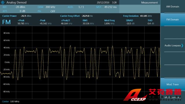 基本數(shù)字調(diào)制格式被用于多種應(yīng)用,例如近場通信。R&S FPC 支持 ASK 和 FSK 分析。數(shù)字調(diào)制顯示屏包括軌跡、眼圖、調(diào)制誤差和符號分析。此外,還提供低功耗藍(lán)牙 (Bluetooth LE) 和胎壓監(jiān)測系統(tǒng) (TPMS) 的專有配置預(yù)設(shè)。通過內(nèi)置揚(yáng)聲器或耳機(jī)插孔支持解調(diào)音頻。